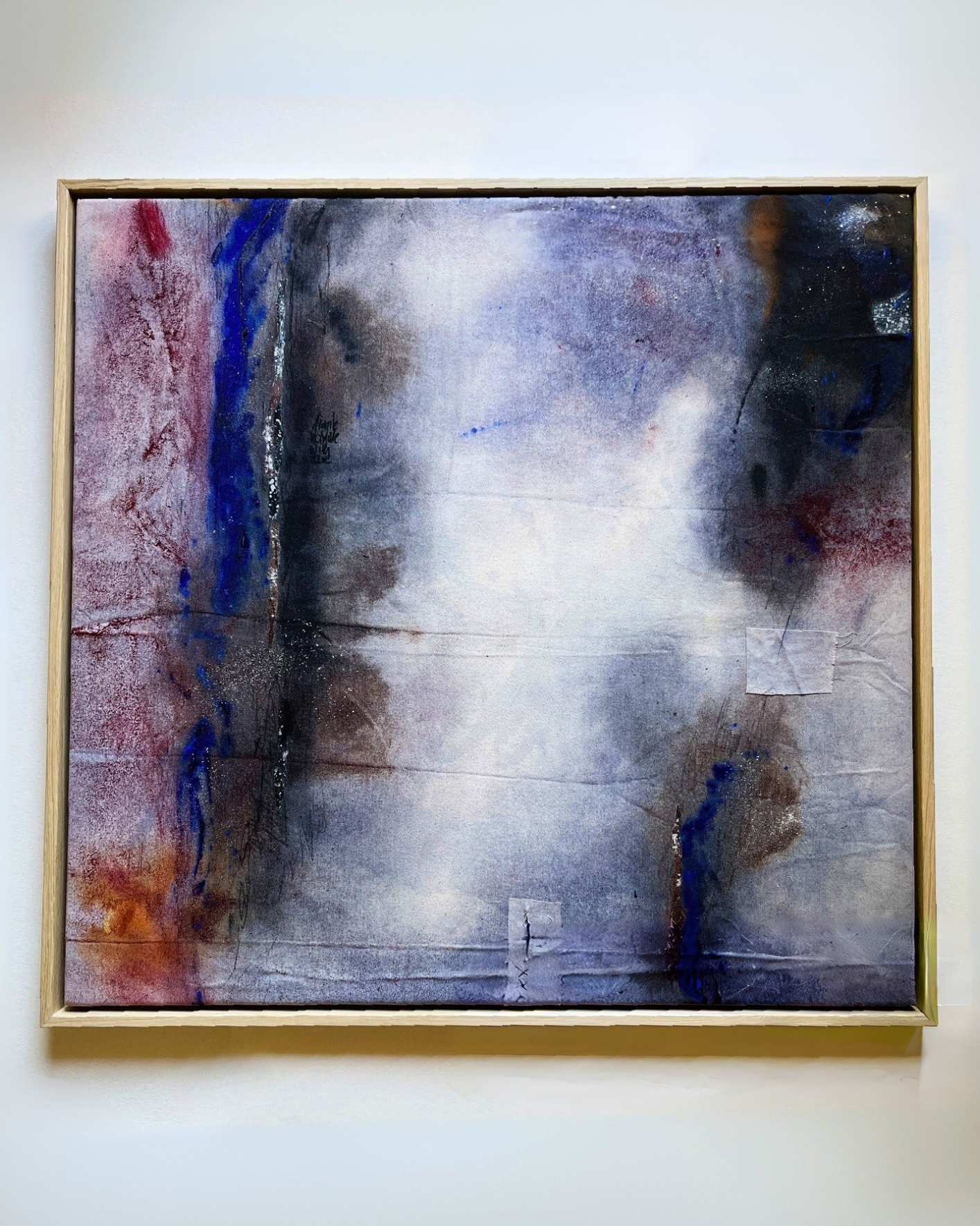 Die sichtbaren Falten sind bewusst Teil des künstlerischen Prozesses und gehören zum Werk selbst. Die Leinwand ist fachgerecht gespannt, sodass die Falten keine Mängel darstellen, sondern Ausdruck von Struktur, Spannung und Tiefe sind.