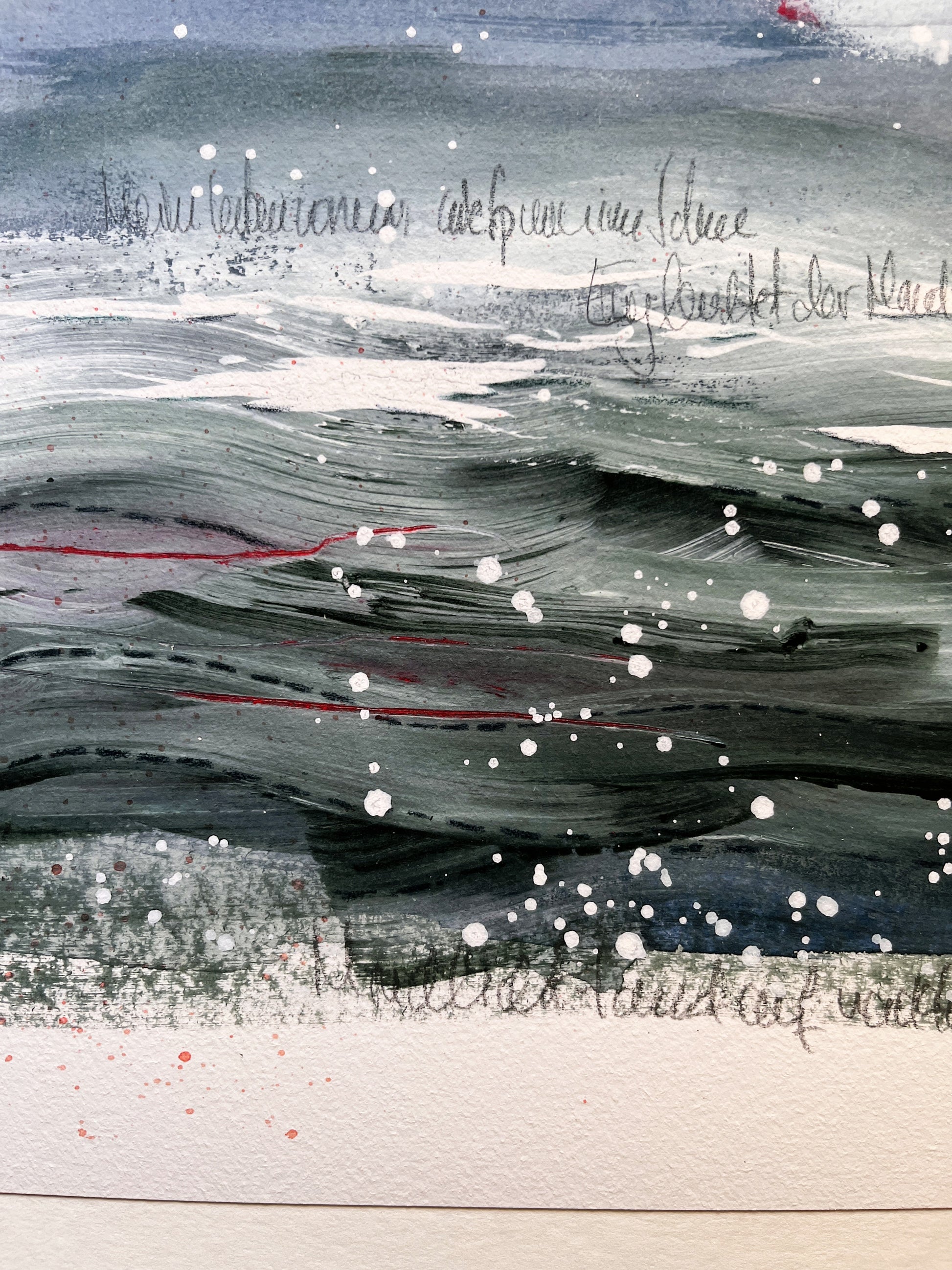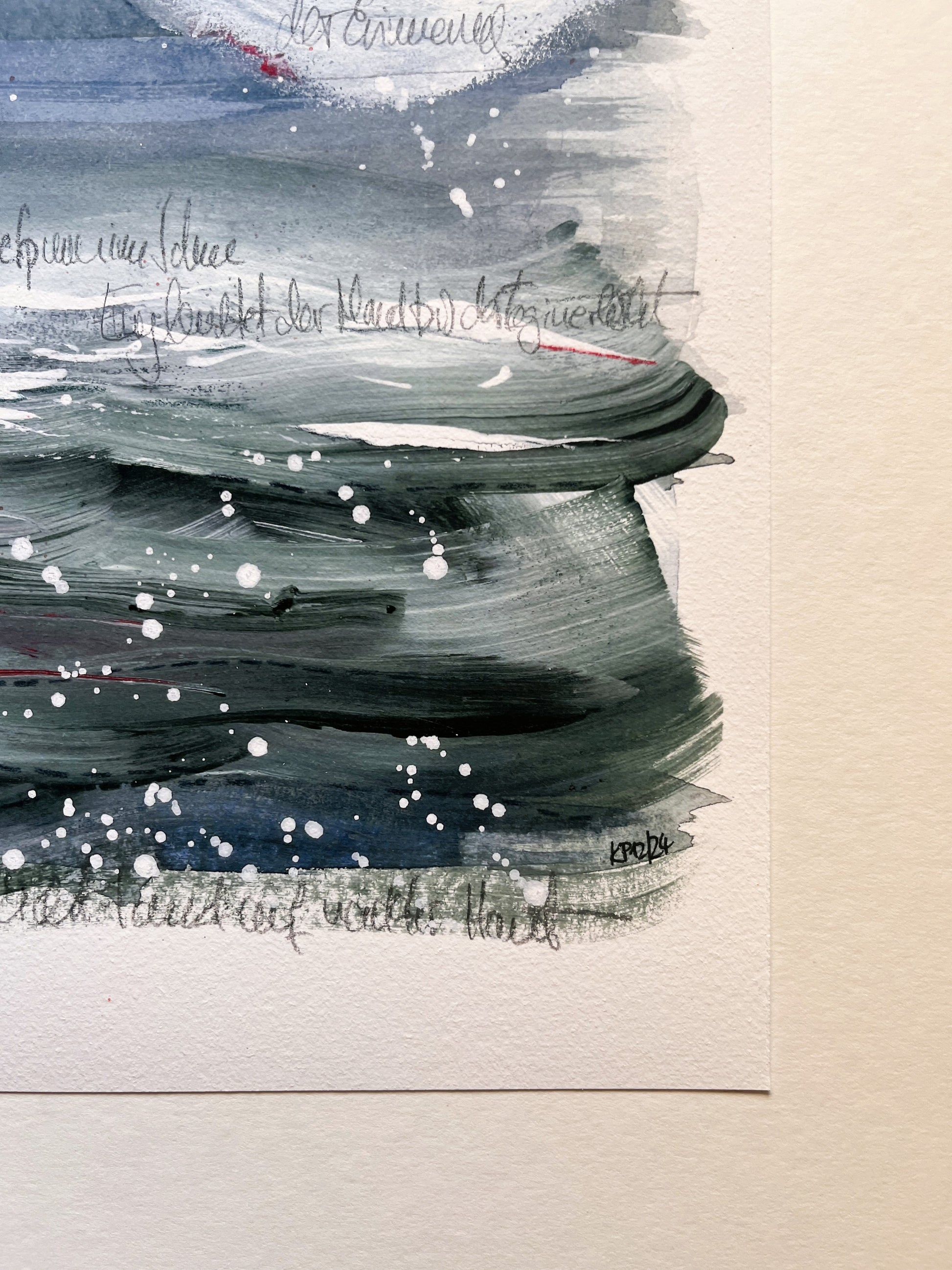 Ein Winterabend bei Vollmond. „I see you“ ist eine stille Landschaft, getragen von dunklen Blautönen, grünlichem Licht und zartem Schriftklang. Eine Erinnerung daran, dass Gesehenwerden nicht laut sein muss - nur echt.