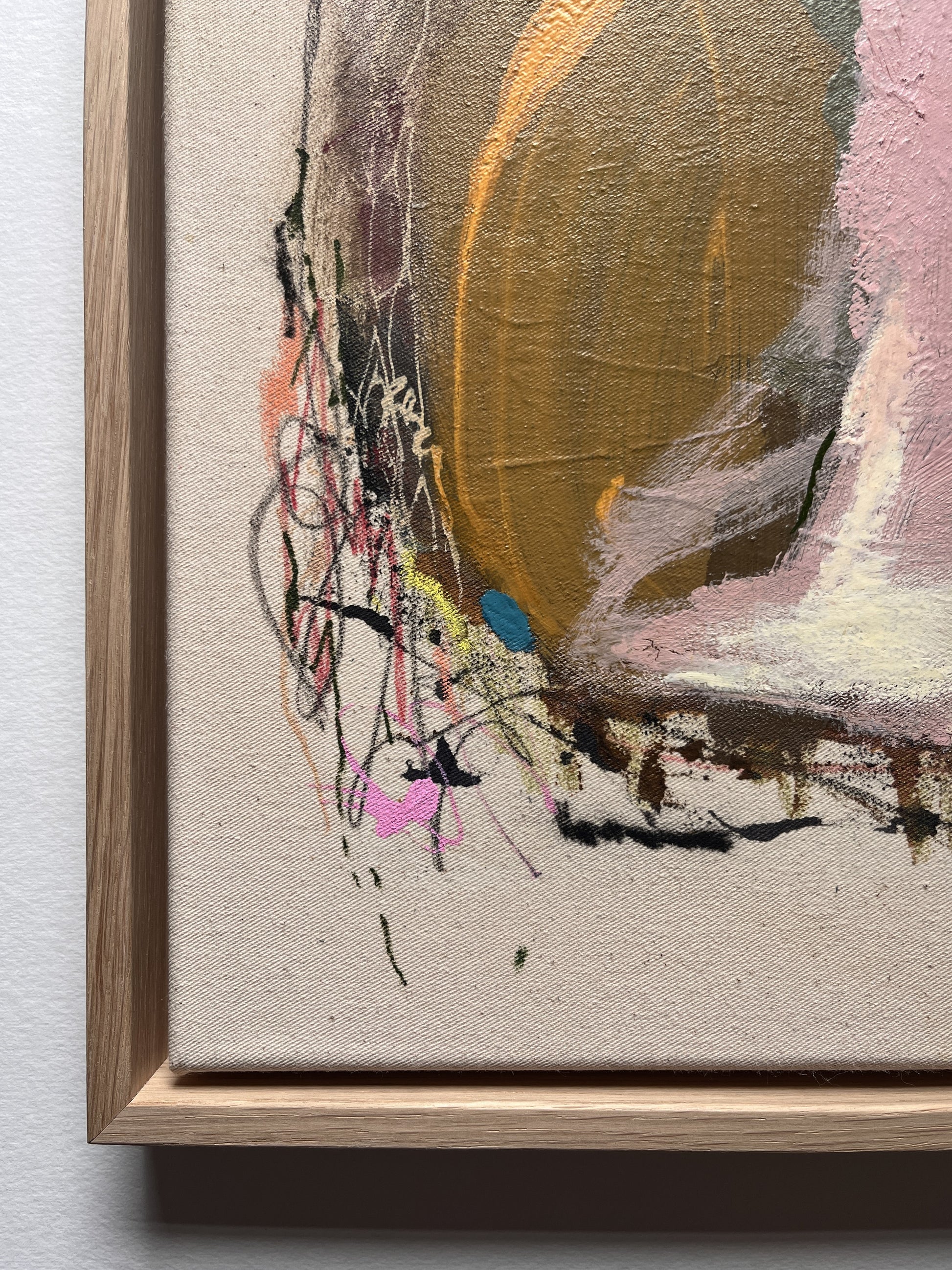 - Original Mixed-Media-Arbeit mit hochwertigen Künstlerfarben (Acryl-, Aquarell- & Ölfarbe, Acryltinte, Kohle, Bunt- & Acrylstifte, Gouache, Ölpastellkreide und Bleistift) auf Leinwand (Baumwolle)